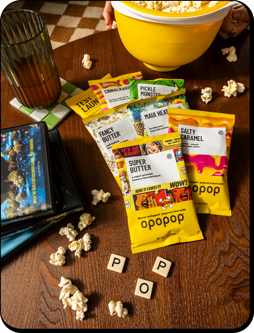 Opopop's flavor experts engineered the first Flavor Wrapped™ technology to solve what traditional popcorn never could—intense, even flavor in every bite.